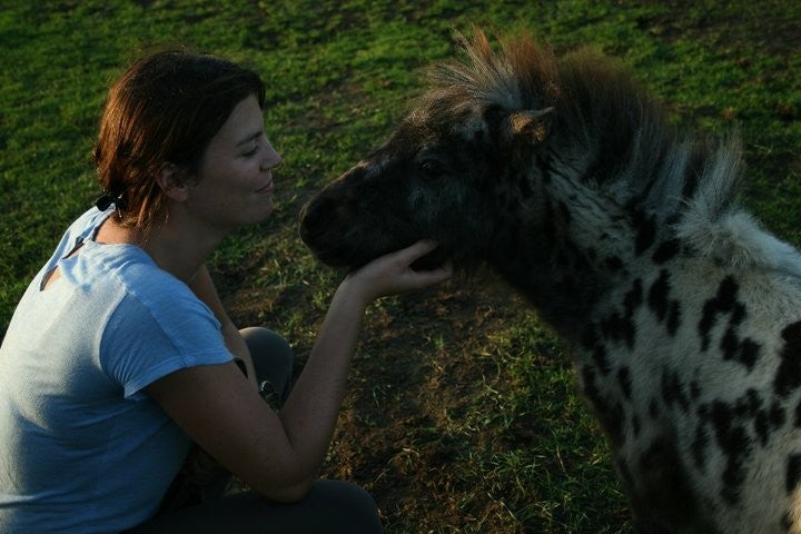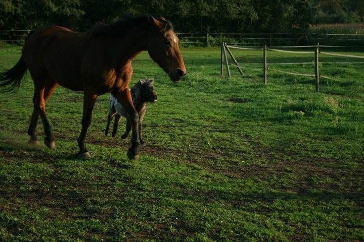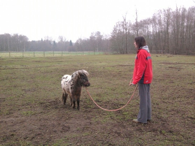 Sinds onze les heb ik veel meer zelfvertrouwen gekregen in mijn omgang met Kamiel. Ik weet nu wat ik van hem kan vragen. Onze relatie is er dan ook sterk op vooruitgegaan. Vroeger liep hij altijd achter Follow-me aan. Nu is hij de eerste om me te begroeten als ik aankom in de wei, ook al is follow-me nog met iets anders bezig (voornamelijk gras eten). Hij oefent goed mee en doet al vrij vlot "voetje", "zakken", "opzij"... Het volgen en stoppen lukt ook vrij goed, net als tussen balken heen lopen, over balken heen lopen...