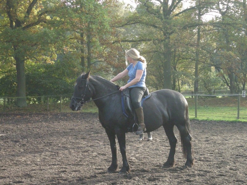 Gelukkig kon ik ondertussen ook gaan paardrijden op de paarden van Cindy en Bruno. Hun stal is ideaal gelegen om tochten tussen bossen en vijvers te maken. Dankzij hen leerde ik Jef Schroyen kennen. Een leermeester zoals je er maar weinige tegenkomt. Een geschenkje uit de hemel. Jef probeert me de beginselen van het dressuur rijden bij te brengen. Het begint hem aardig te lukken. De basis is vertrouwen en vandaaruit kunnen we groeien. Een traditionele dressuurtrainer die openstaat voor natuurlijk paardrijden en die het echt weet waarover hij het heeft!